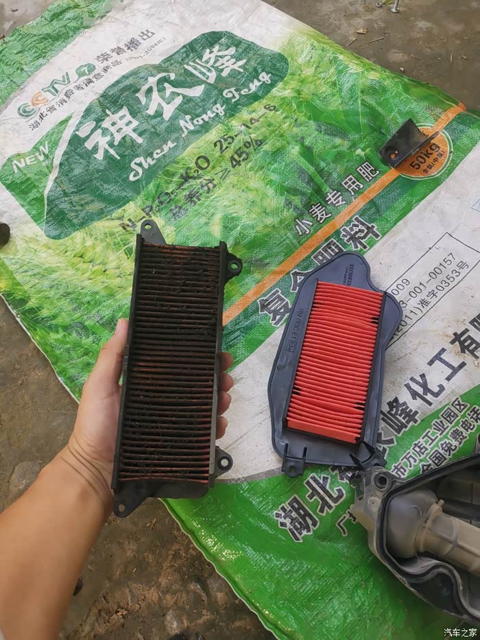 ,先用个废牙刷简单清理下油泥吧(用的是油性滤芯,所以没办法用气枪吹,咱也没那个条件