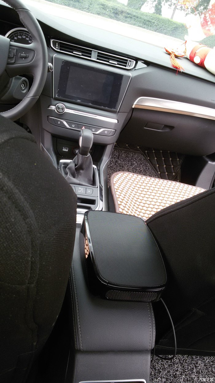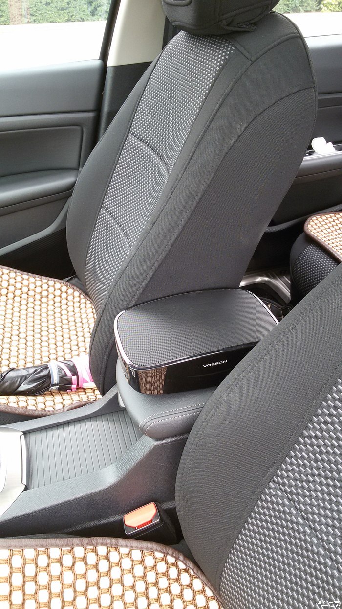 在后排照的中控,前扶手放的净化器,插在后点烟器上。