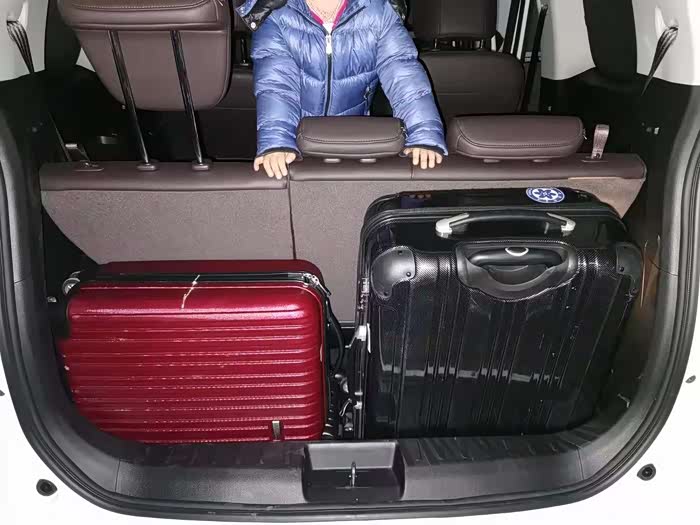 后面重点说下后备箱的空间,今天刚好有空把家里的几个行李箱拿来测试。有两个20寸一个28寸,测试的情况如下: