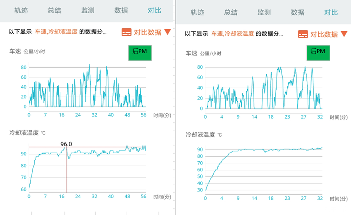 发现变化不明显,前2图是换前,右后是换后。都是会上升的95-96度,特别是中后段入市区灯多的时候,原地温度物别容易上到95-96