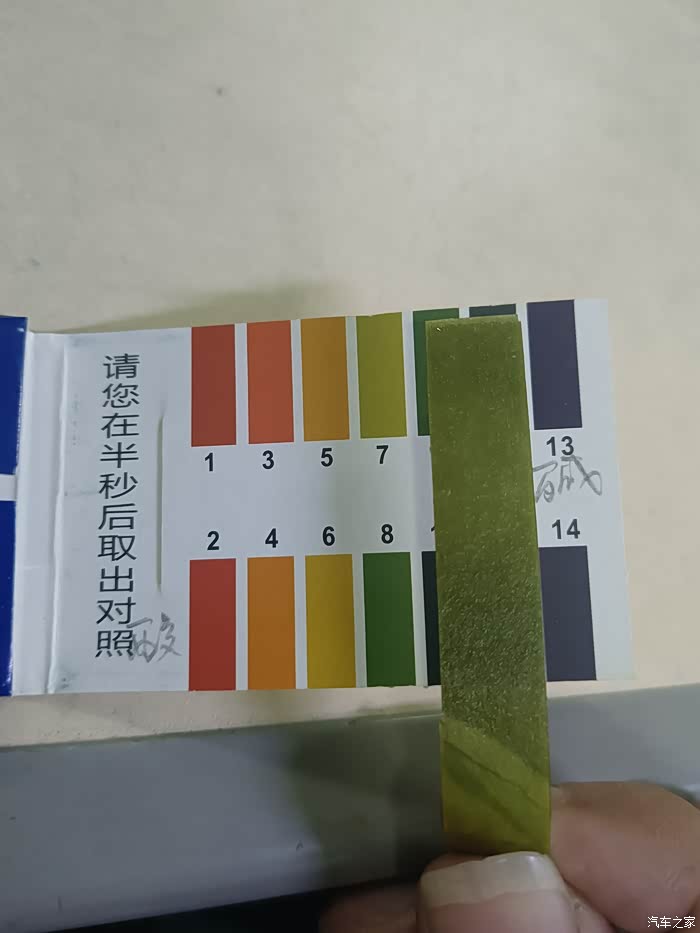 偿试检查 了下SAN热水箱的液体,按国标PH有点点下降。标准显示7.5-11