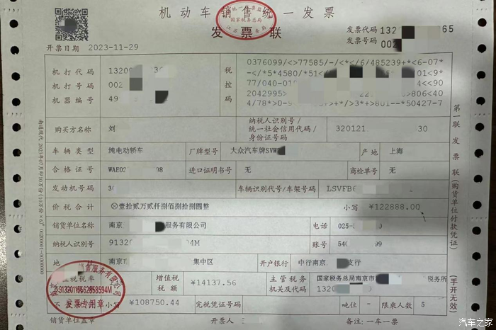 购车发票:2023-11-29,价税合计:12.2888万元