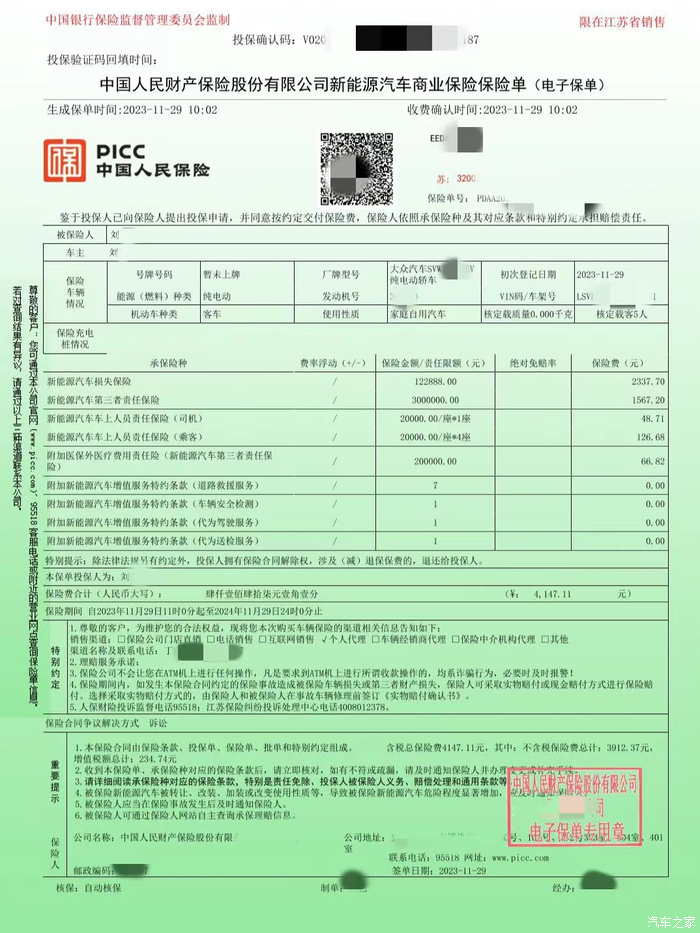 首年商业险保费:4147.11元