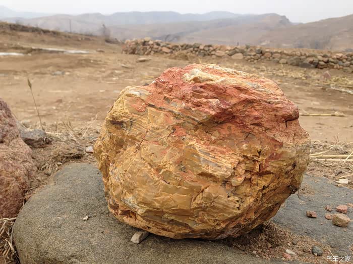 村里的石头,是不是很漂亮,一层层的,是河床沉淀下来的纹路。
