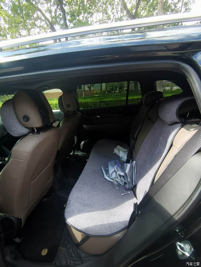 座椅厚实,腿部支撑很足,就是腰部支撑有点空,开长途有点累腰。后排有出风口、充电口,而且后排空间很宽敞,坐后面也很舒服。