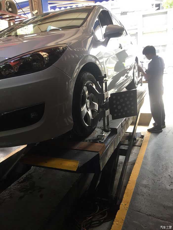 下单生成二维码,师傅马上开去上台子做四轮定位,师傅说情况还好,微调了一下。