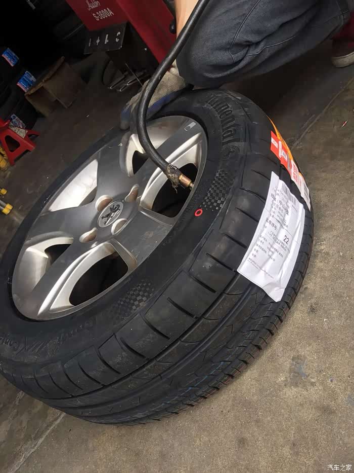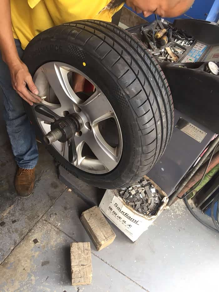 第三天周六,赶紧电话问问店里有人没有。店里我近,去了好彩就我一个顾客,师傅真是手脚麻利啊。三下五除二,拆卸、安装、打气、做动平衡、装车。半个多小时搞定了。虽然不是工场店,途虎授权店的安装服务还是不错的。
