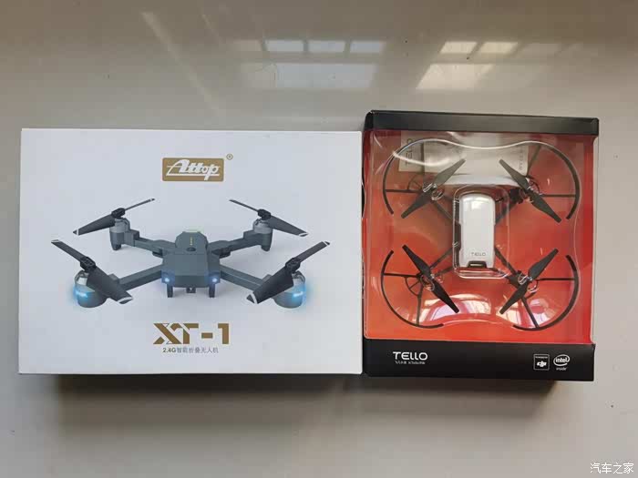 上图左边就是这次我获得众测机会的雅得XT-1无人机,当初我写评测计划的时候我就设想如果获得众测机会的话会用它和我的特洛无人机做一个比较,由于是双十一快递业务比较忙所以北京-天津的EMS用了将近四天的时间才到,拿到快递第一时间拆开快递看了一下,外观完好,盒子相较于特洛更加的严实,给人更好的印象。