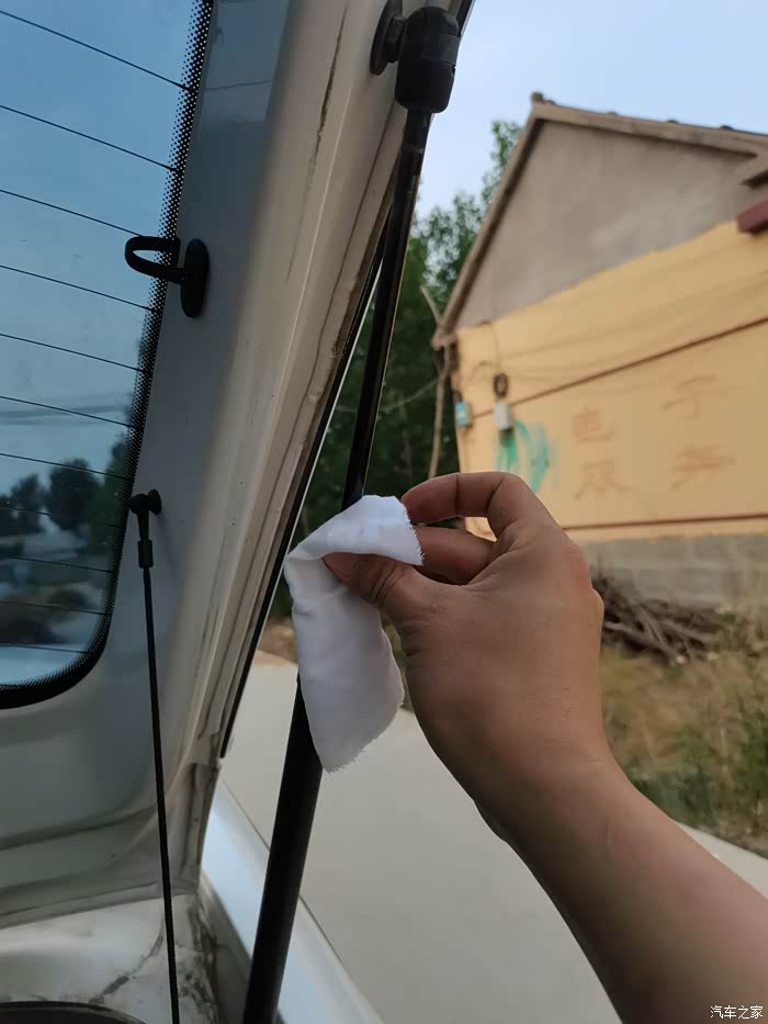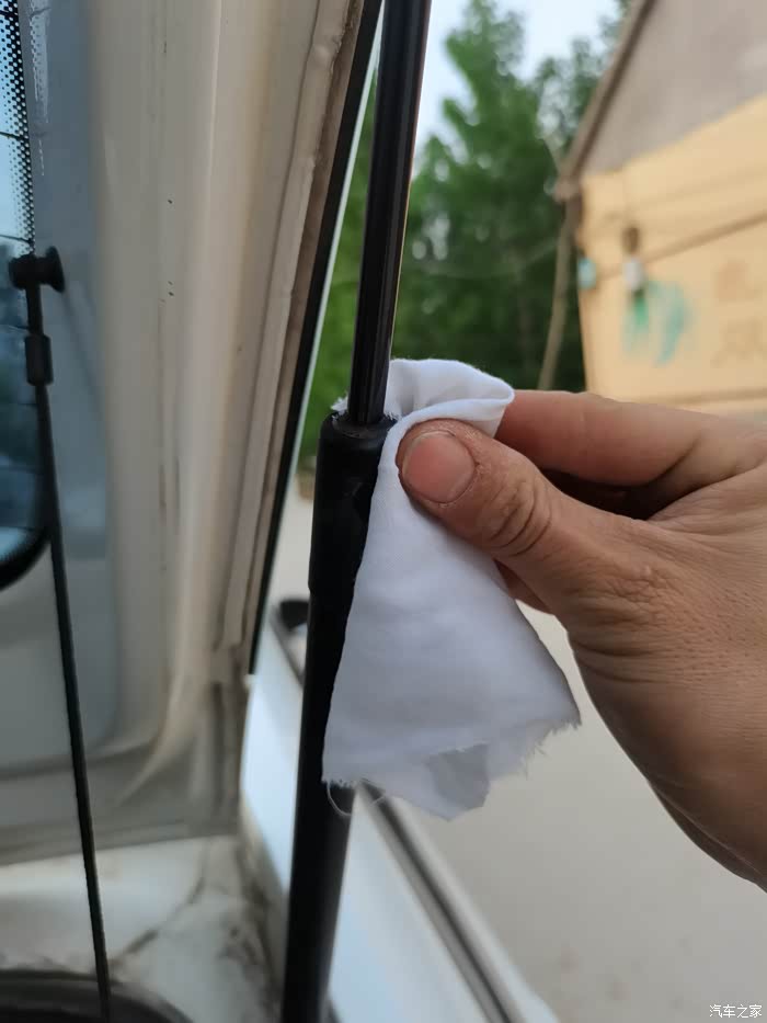 涂完一个,再涂另一个,待两个支撑杆都涂抹上黄油以后,反复开启闭合后备箱盖,让支撑杆上的黄油涂抹均匀,用干净白布擦掉多余的黄油。液压撑杆得到了润滑,异响就消失了。