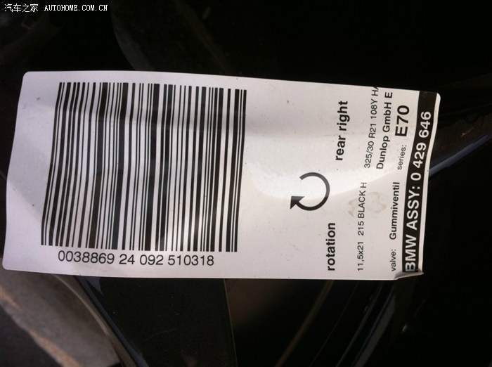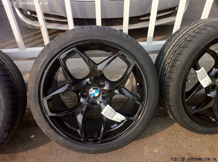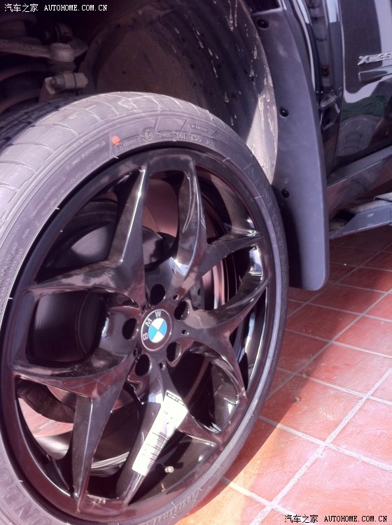 邓禄普215型 21寸轮毂轮胎 宝马公司要求强加的,不然加价5W什么也不送。。。太恶劣了。。。鄙视下,不过这轮胎真的很给力,还有一款是铸铁色的,我觉得没这款给力。PS:挡泥板是匈牙利产的,为了配合21寸轮胎要选装X5M上用的才好,在此感谢绿背男爵和奔跑的男人对我的帮助!!