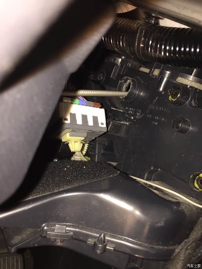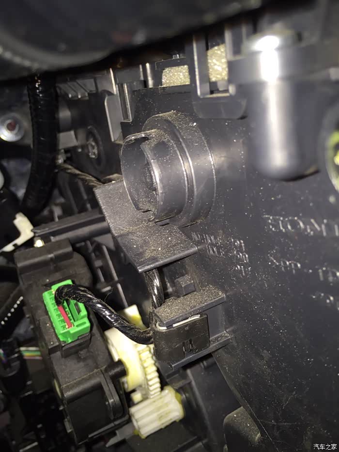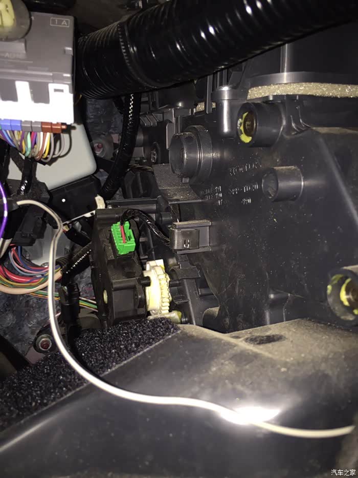 接上光线传感器走线到空调面板,光线传感器有两种,一种是7针2.4豪华版带自动大灯,一种是2.0豪华版的2针,我选用的是7针,个人建议用2针就足够了,因为自动大灯2.0装上不能正常使用。