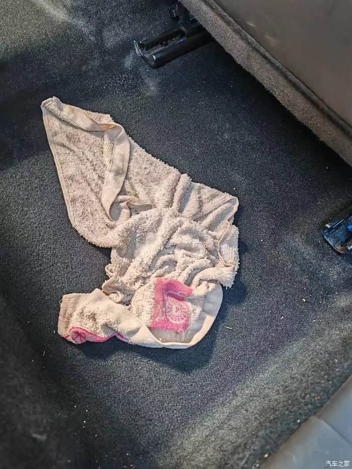 不管,直接回家再处理,回去把脚垫拆了出来,副驾驶倒还好没湿多少,后排就惨了,地毡按一下就有水出来,我赶紧拿干毛巾过来吸水擦干,一吸一拧,竟然可以拧出水。