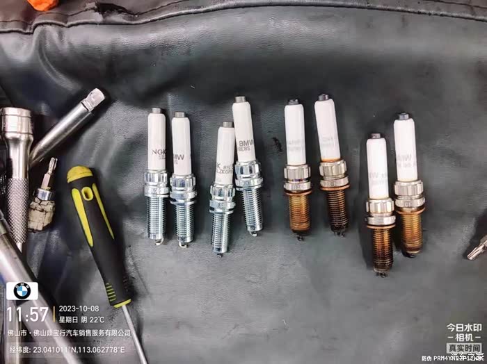 火花塞,跟大家发的图一样,应该是1和2缸的要明显黑很多,至于有没有油不知道,本人甩手掌柜,车开过去没管,图片都是APP上的E车间下载的。