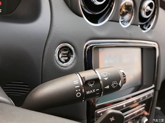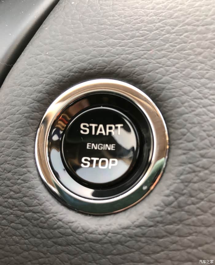一键启动,和方向盘一样也是往里凹的,不如奔驰的凸起键手感好,塑料感较强。