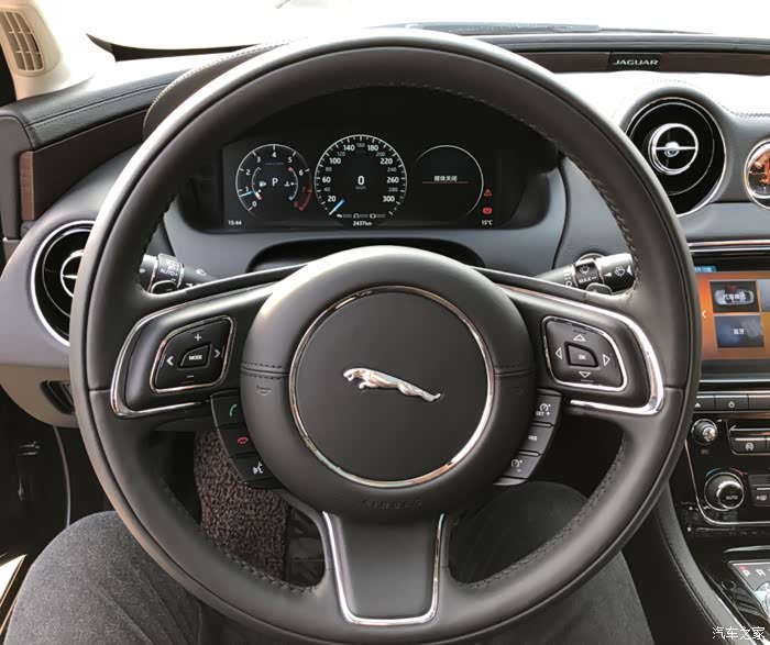 多功能方向盘,按键部位往里凹,说实话,我觉得没有奔驰方向盘手感好,XJ的偏细,按键阻尼感一般,缺乏高级车质感,不过倒是挺能找回童年的感觉,像大玩具。