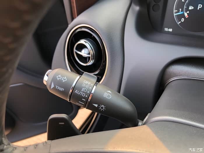 这一圈环抱式木纹应该是XJ内饰点睛之笔,炮筒出风口非常漂亮,木纹贴了内饰膜。