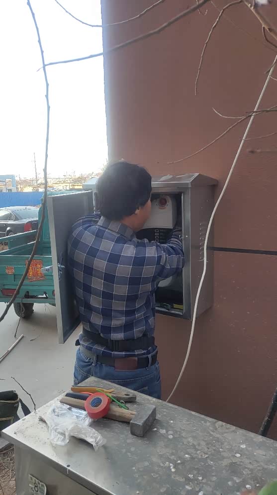 物业确认了用电安全后,我们全家齐动手开工安装。