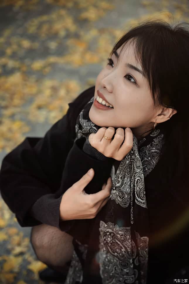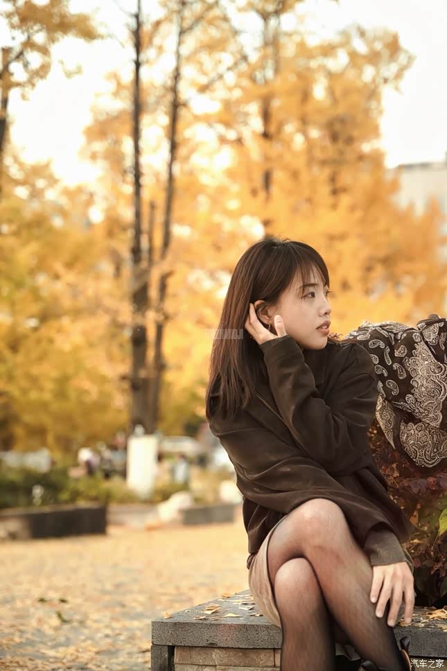 穿过停车场便是银杏林。媳妇踏着黑色短靴踩在落叶上,沙沙声仿佛成了拍摄的伴奏。她靠在车旁,棕色长裙与银杏叶的色彩层次交织,深色外套又压住了整体的暖调,让画面不至轻浮。我让她随意走向车辆,抓拍她转身时发丝拂过车身的瞬间——没有刻意摆拍,反而成就了最自然的互动感。