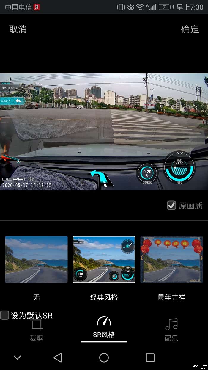 下载完成后,选择视频风格“SR风格”,APP就会将相应的行车数据展示在视频的画面中。