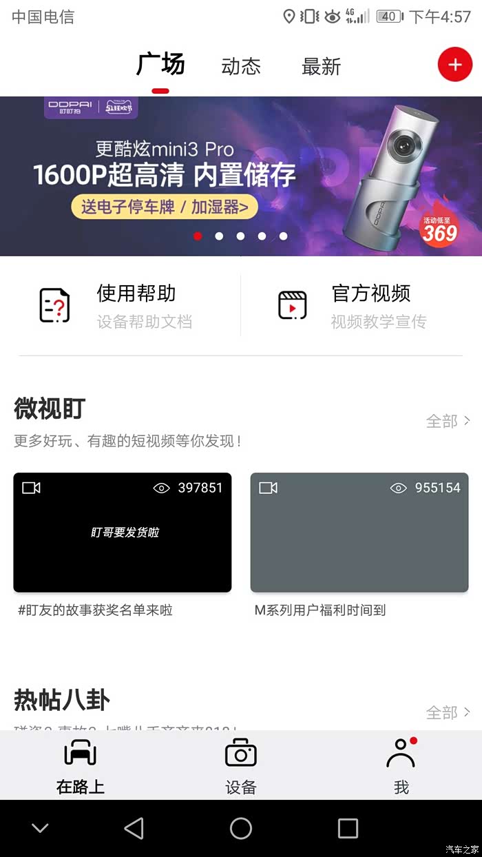 打开盯盯拍的APP,默认首页就是广大车友的分享视频。