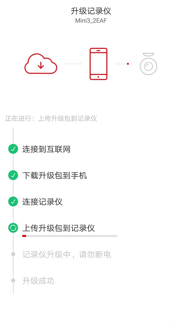 首次连接成功后,行车记录仪默认需要升级,静静的等待就好。