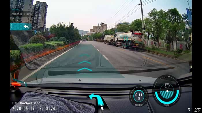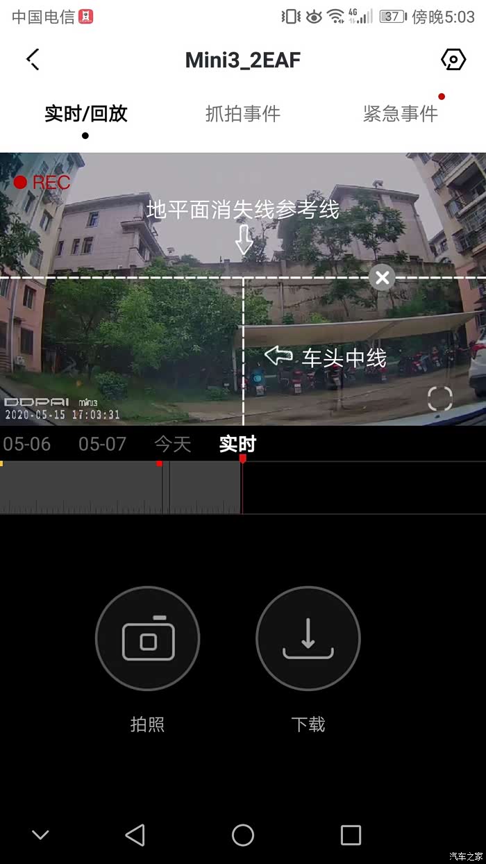 APP辅助安装,可以根据提示线,对行车记录仪的角度进行调节。