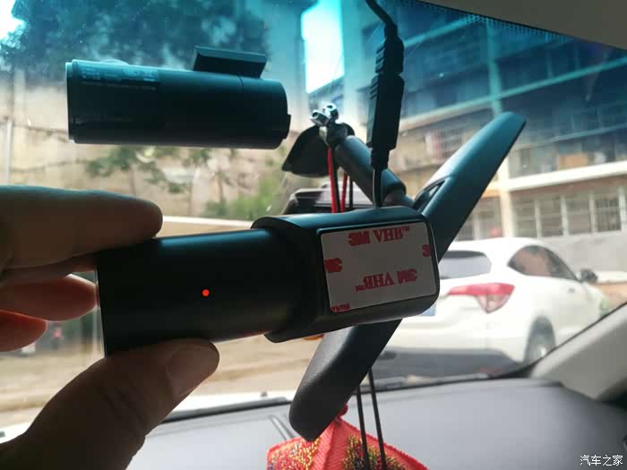 原有的行车记录仪是通过3M胶粘贴在挡风玻璃上,很多朋友说直接拔的话,很容易造成挡风玻璃贴膜的损坏,比较适当的方法有:电吹风加热慢慢撕,鱼线,棉绳等等,但是我办公室没这些玩意,