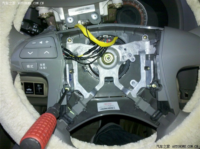 然后拆方向盘上盖,就是我们按喇叭的那一大块。、方向盘两侧各有一小盖,轻轻撬开