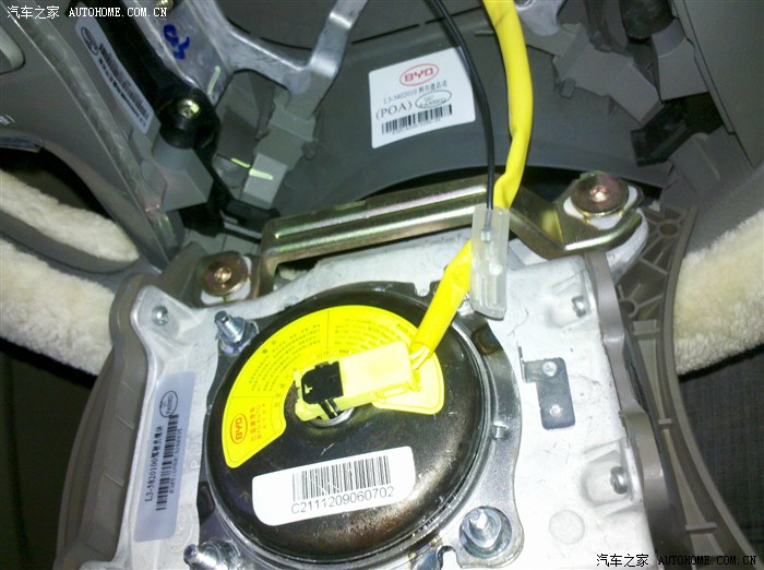 轻松拿掉。至此,方向盘下面另一个小插头就会显露出来、在最上面。也是只有一根线,其它是空位