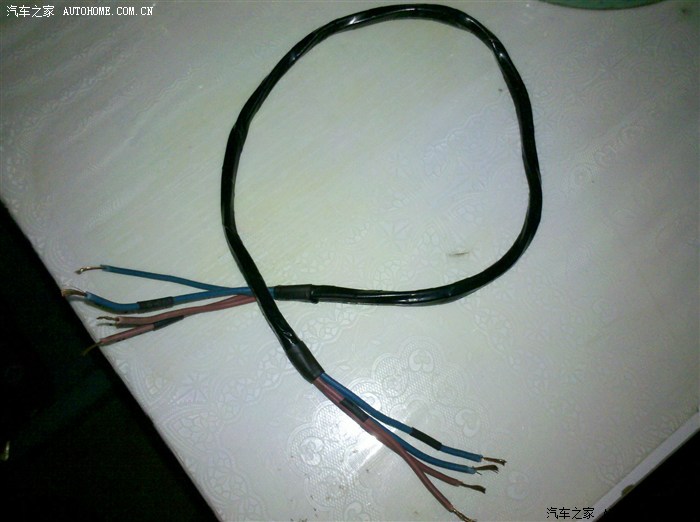 因为四条线有两条是相同色,所以两头各套黑色热缩管加以区分,为蓝黑和红黑。另两条纯色则为蓝和红。