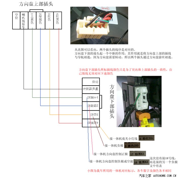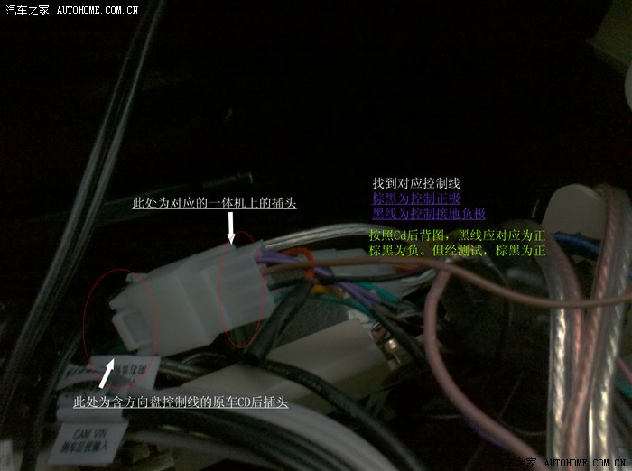 在动手之前,主要参考两位车友的贴子,大致意思是弄懂了,却对导航后的控制线接法仍是一头雾水,因为两位车友都没有说明接线方式却接线原理。虽然大家的一体机各一一样,但通过这次长达三天的折腾,明白了一个或许正确好像又是废话的一体机接线的原理。看完图大家或许就明白了