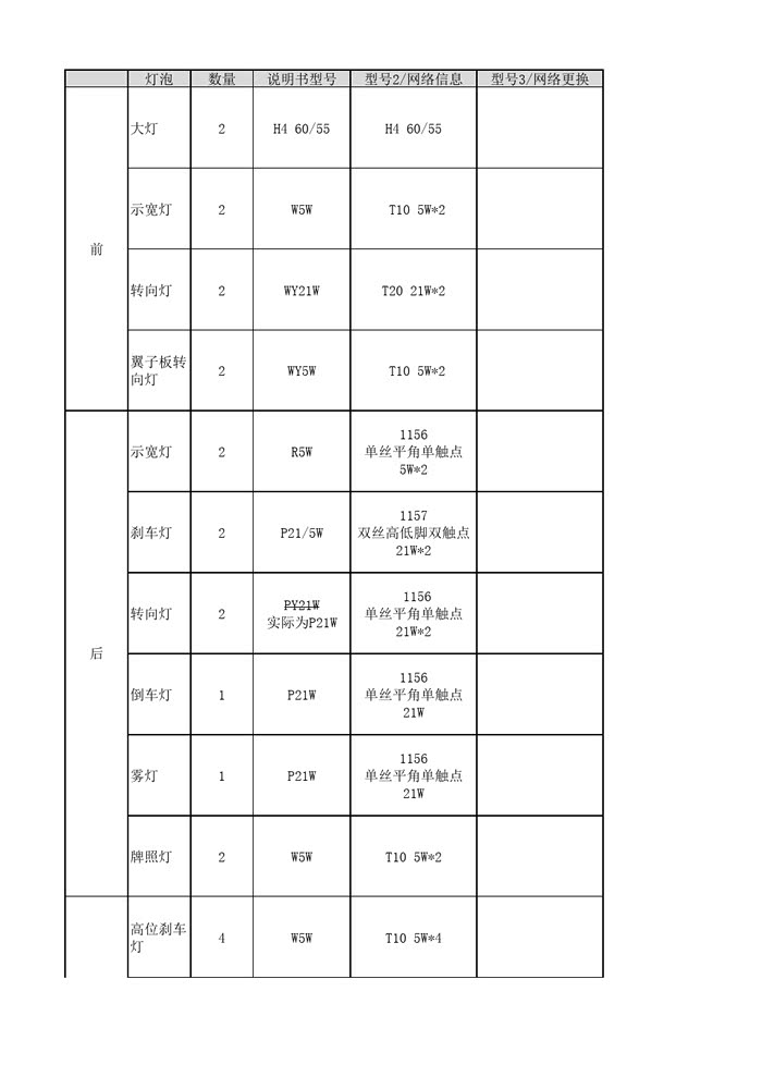 5.后面尾灯中的示宽灯,刹车灯,倒车灯,后备箱灯,高位刹车灯,前面示宽灯,全部换成LED的。赛欧3上基本所有的灯型号下面会上图大家参考一下。