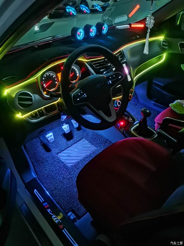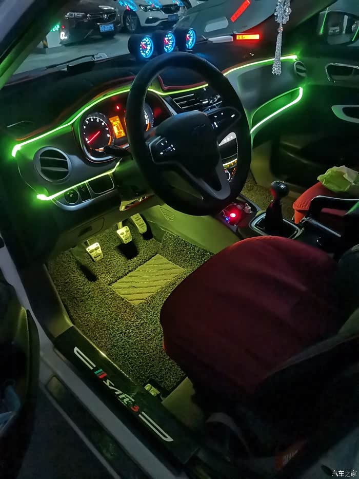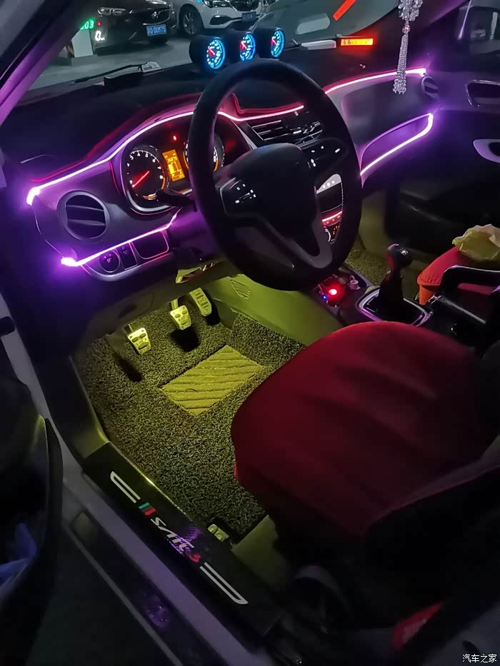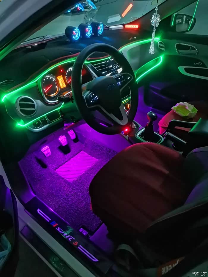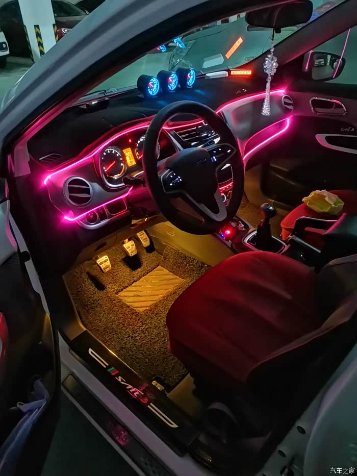 2.中控加装氛围灯,这个氛围灯要说的是,以前买的那种20几块钱的那种,真的用不了多久,用个两三个月就越来越不行,最后发暗,就几乎没用了,这次买的稍微好点的,用灯珠发光那种,颜色可以调也可以自动变光,有app可以控制,功能很全!变光速度,光线强度,颜色,等等都可以手机上操作。用了一年,灯光还好没有变暗。