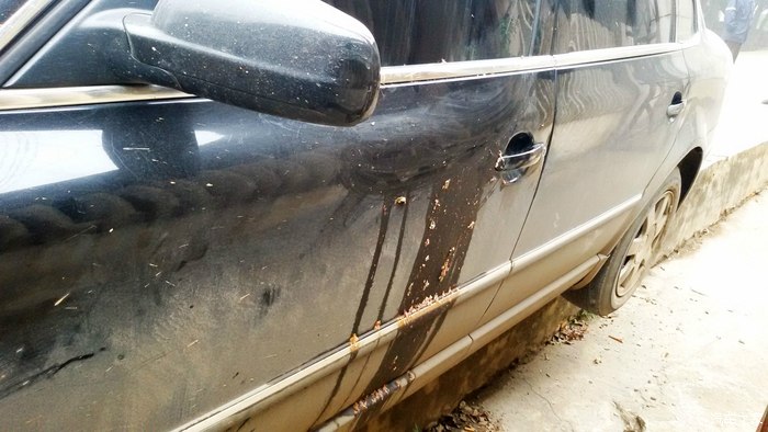 1,今早,我从家里出来去上班;路过此地时,所看到的一幕。这是我看到它的第一眼:一辆帕萨特。。。。。。在它左边的围栏里,是小区里住户停放自行车,电动车和摩托车的车棚。。。。。。