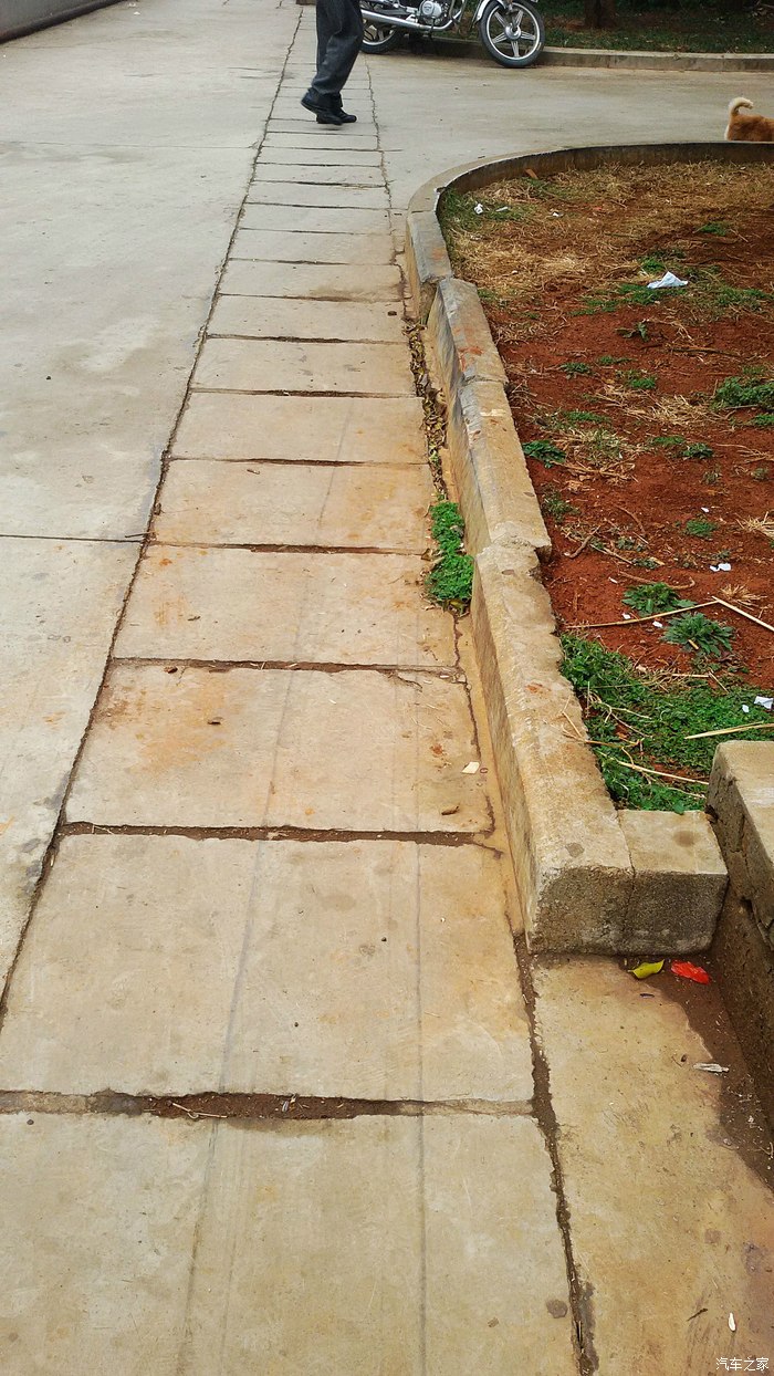 8,第八眼:这辆车的左边两个轮子,似乎就是从这里出了绿化带;在绿化带围挡上,还留有轮胎摩擦留下的的痕迹。。。。。。如此看来:此前,就在这里,这辆车的左侧轮子;实际上已经进入了绿化带里,然后又从我身后出来了!最后,它在我身后,又再一次重新进入到了绿化带里,然后,又再一次地冲了出来;然后左转出去了!怎么样?这位司机行驶轨迹够TMDNB吧?哈哈。。。。。。