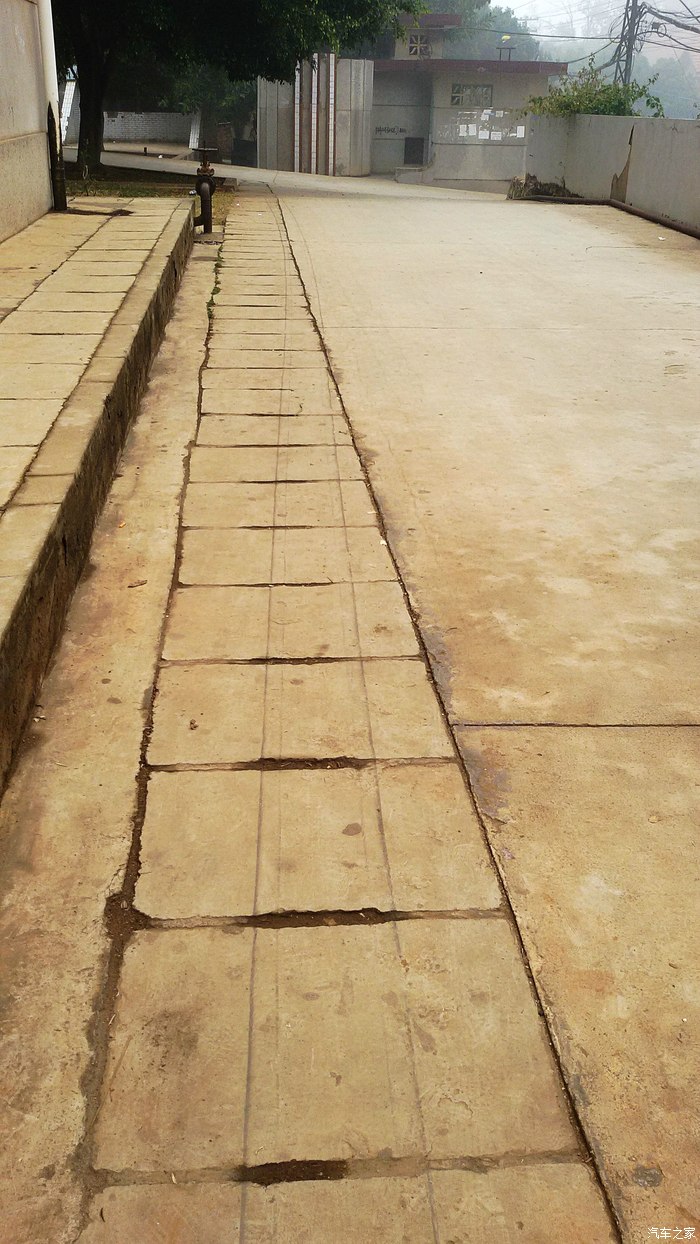 11,第十一眼:你看看:这是它从里面左转出来以后,左边轮子在排水沟道盖板上留下的车辙印;正前方(北),是一个小区里的公厕;公厕的右边,是自行车,电动车和摩托车的停车棚。这辆车似乎是要从这里右转(东)出去,下图中,与之T接的,是小区内部东西向的支干道;左边(西)是个大陡坡,右边(东)是下坡和另一个T接路口。。。。。。
