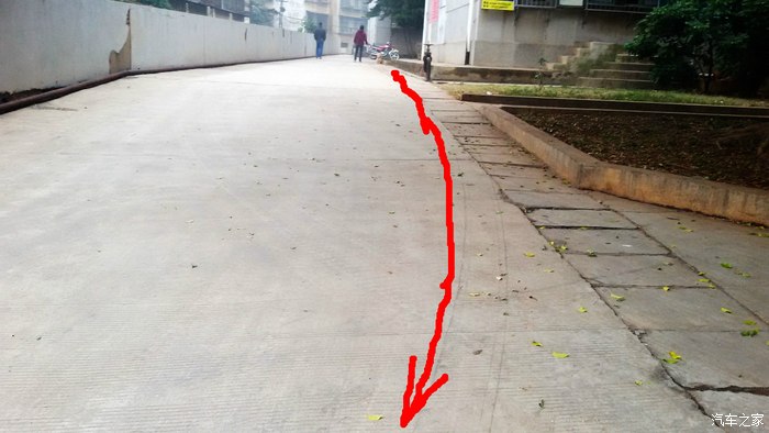12,第十二眼:图中所画白线的左边,就是这辆车左边轮子的车辙印。车头正前方5M处,就是小区南(右)北(左)向的主干道!还好,它还没有进入小区里的主干道,就在这里爬了窝!否则的话,在这样人口密度很大的小区里,它这么左冲右突地行驶;真不知道还会出什么大事儿!