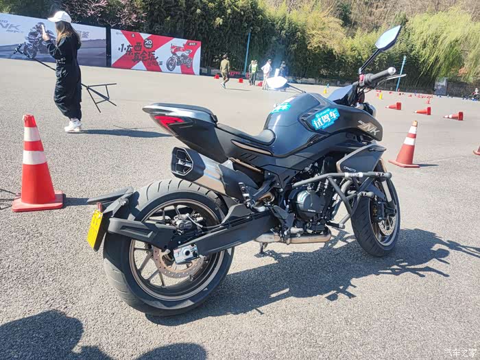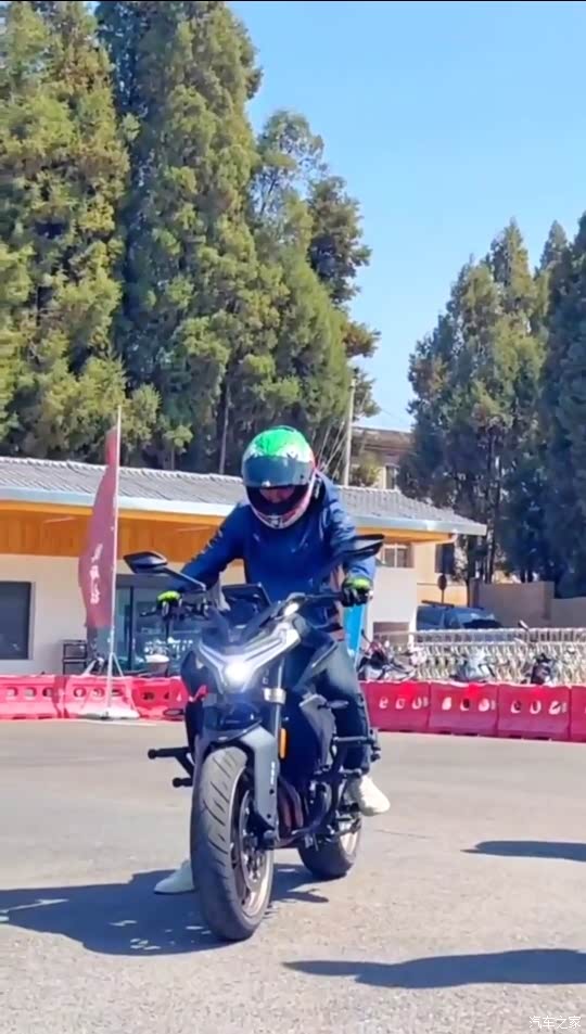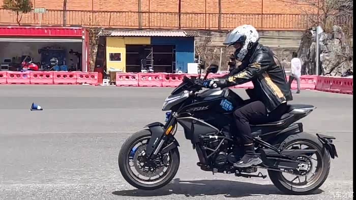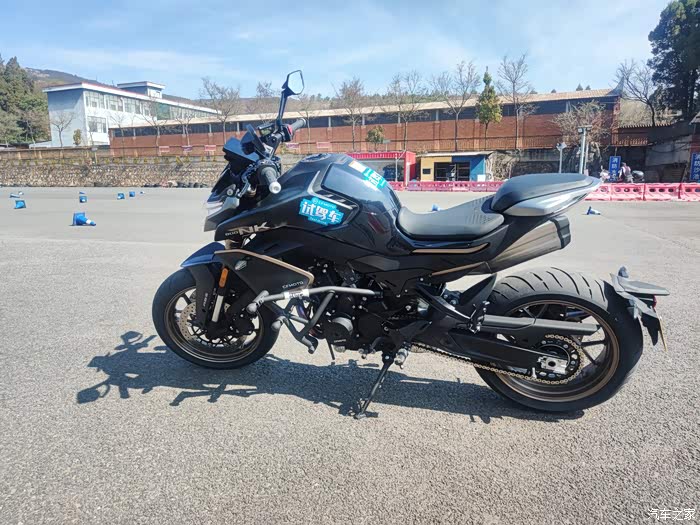 话不多说,由于试驾距离较短,就是在场地绕圈,简单谈谈骑行感受 ,我1.78米目前骑行春风800MT,我骑上800NK的第一瞬间就觉得这台车坐高合适,车辆紧凑轻盈,重心低易于操控,油门调校细腻,滑动离合轻量化车身186KG,加上轴距较短,骑行过弯非常灵活。该车有运动,街道,雨天三个动力模式,运动模式下给油轻松翘头,让你时刻感受到这台发动的百匹大马力,官方测试的极速为220KM/H,原厂配置的轮胎抓地力还不错。