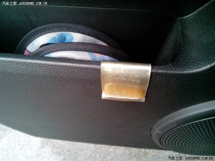 照糊了,但能看到车门储物格里的一块黄色的东西吗?这是一块木板,杯架就是用自攻螺丝固定在这块木板上的,木板要木质硬一点的板材,这样拧紧不会发出异响。储物格内也不会有螺丝头戳手。费用:25元(双11抢的)