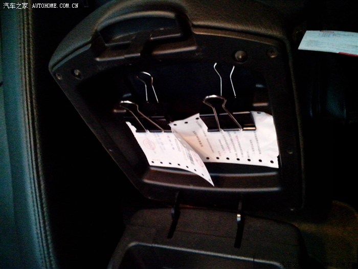 扶手箱内夹两个大号文件夹,就能把上层空间利用起来了,里面可以放行车证,驾照等证件,不会跑出来,外面可以夹一些票据。花费:0元。夹子是办公室順出来的