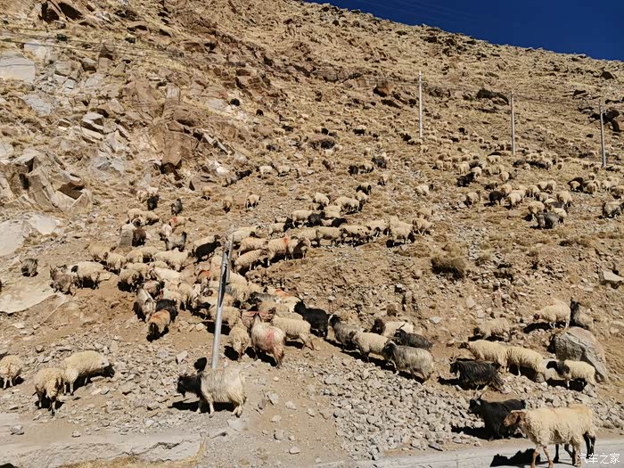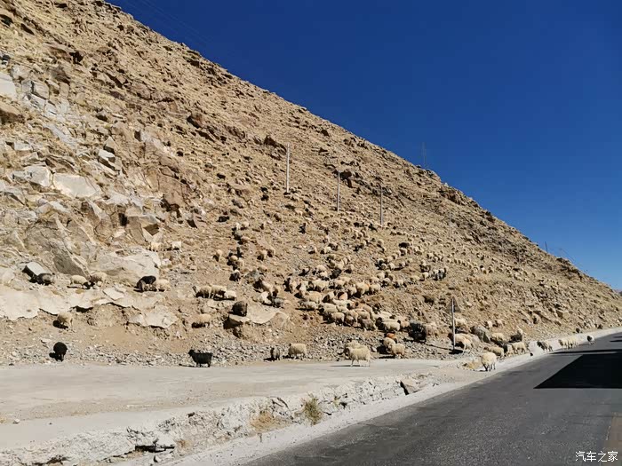 我们中途遇到了一家本地放牧的,这是我路上遇到最大的一家牧民,羊的数量实在是太多了,甚至我们都在路边停车七八分钟让羊,羊已经一部分到了山上,但是公路上的羊的数量依旧是很多,如果一只羊算2000块,那这些羊得多少钱啊,真的是不敢想象。