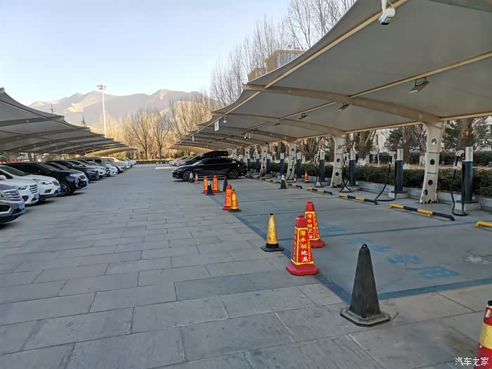 这个充电桩是我第二次来,第一次来的时候就是从林芝上高速过来,这次要从拉萨上高速到林芝,也在这里充电,充电很快,我们到拉萨4S店的时候,电量还剩余47%,也就是说从日喀则到拉萨用掉53%的电,折合电量是41度,到了拉萨差不多就是吃下午饭的时间了,正好我们把车停在这个快充桩充电,在充电桩附近一百米左右的位置就有吃的,正好我们去吃饭。