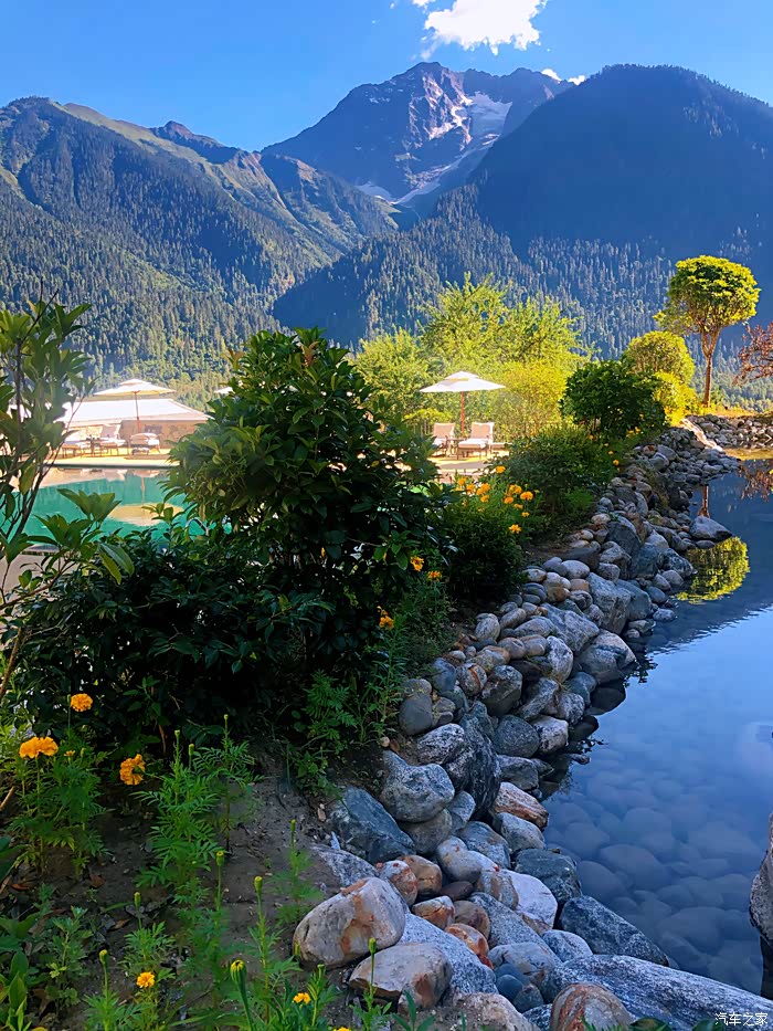 。走走停停,我们终于来到目的地:古乡湖畔的松赞波密林卡。
