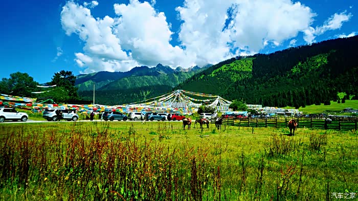 饭后随车去了高山牧场,时间比较匆忙,没有细细欣赏,只在旁边拍了几张照片,午后阳光强烈,照片照出来显得生硬。但对我而言,目的地不是重点,刚才路边的风景才是我的菜,那一大片的格桑花,争芳斗艳,车队唯一缺点就是不方便随时停车,错过就是错过。。。。。。