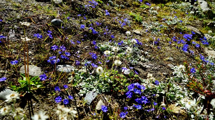 下车前看了一下高度表,3923米,还好没什么异样感觉,要看到山谷和山口,还要爬一段山,刚走一会路边出现了一片紫色的小花,