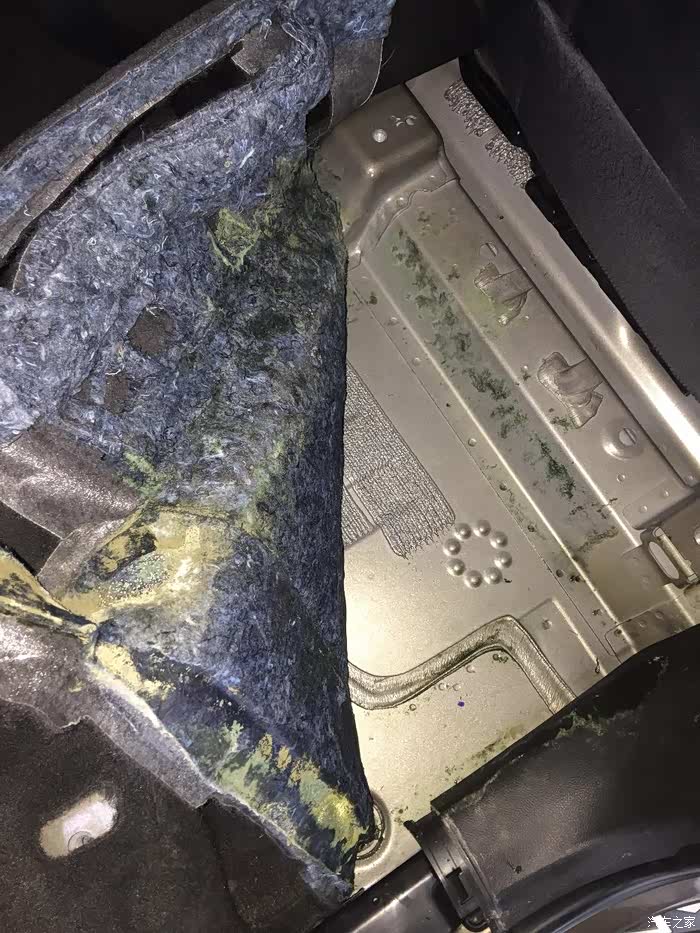 修完天窗排水管漏水就回家了,过了几天车里面的味道怪怪的,检查了一下车,车里后排座椅下的地垫,隔音棉全都发霉了,今天去4s店拆了。