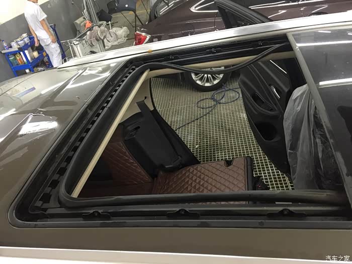 今天上午去4S店修车,把天窗的玻璃拆下来,检查是水管堵了,用气枪吹通了,虚惊一场以为是大问题。