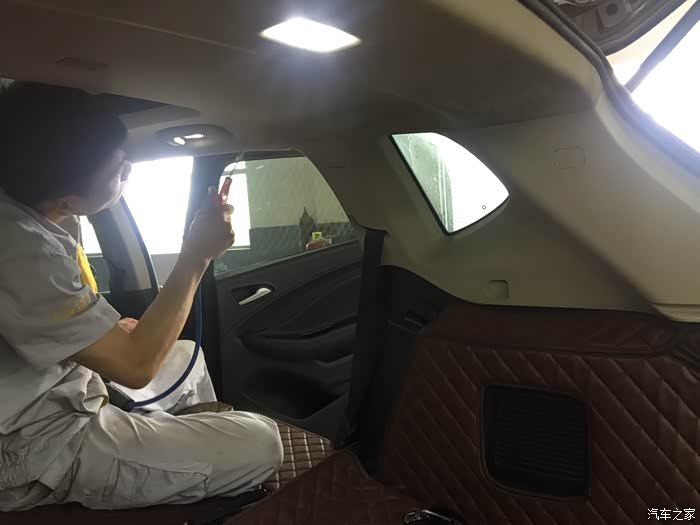 把车内饰全部安装上去,恢复原样吹干车里面的水,漏水的地方用气枪吹干。解决问题。小王师傅很细心帮我吹干。