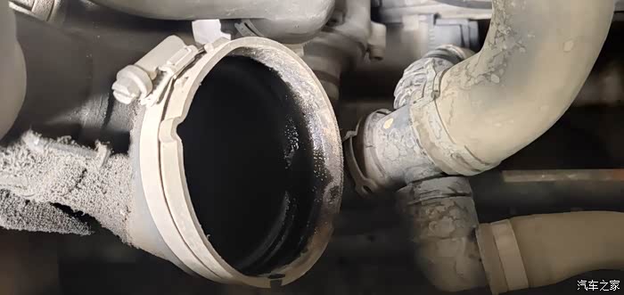 空气格连接的管有油,师傅说是因为气门盖渗油导致的漏油。