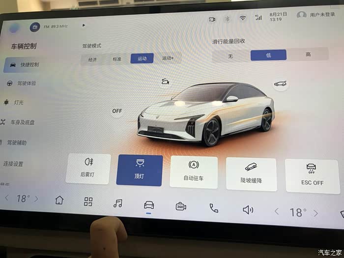 它的驾驶模式有4种,经济、标准、运动、运动+,都可以直接在中控屏进行切换设置,非常方便。